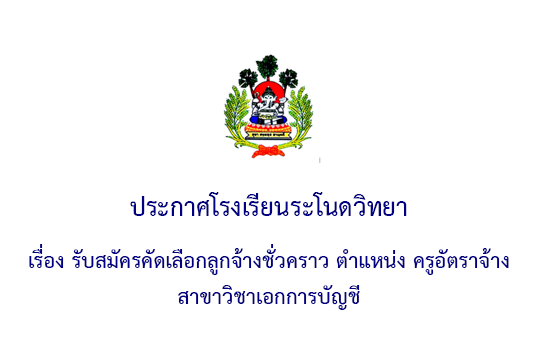 รับสมัครคัดเลือกลูกจ้างชั่วคราว ตำแหน่ง ครูอัตราจ้าง สาขาวิชาเอกการบัญชี