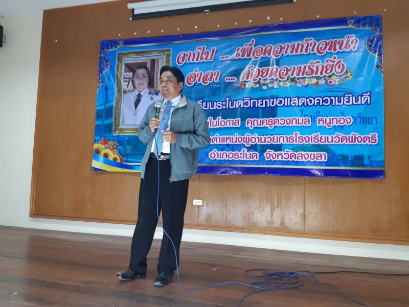 บรรยากาศ งานเลี้ยงส่ง แสดงความยินดีกับ คุณครูดวงกมล หนูทอง ที่ได้รับตำแหน่งผู้อำนวยการโรงเรียนวัดพังตรี อ.ระโนด จ.สงขลา ณ อาคารเศรษฐกิจพอเพียง โรงเรียนระโนดวิทยา เมื่อ วันพฤหัสฯที่ 7 มีนาคม 2562 |
