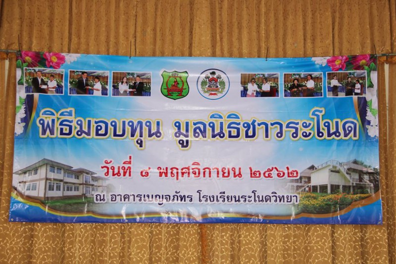 พิธืมอบทุนการศึกษาของมูลนิธิชาวระโนดให้แกนักเรียนในพื้นที่อำเภอระโนด ประจำปี 2562