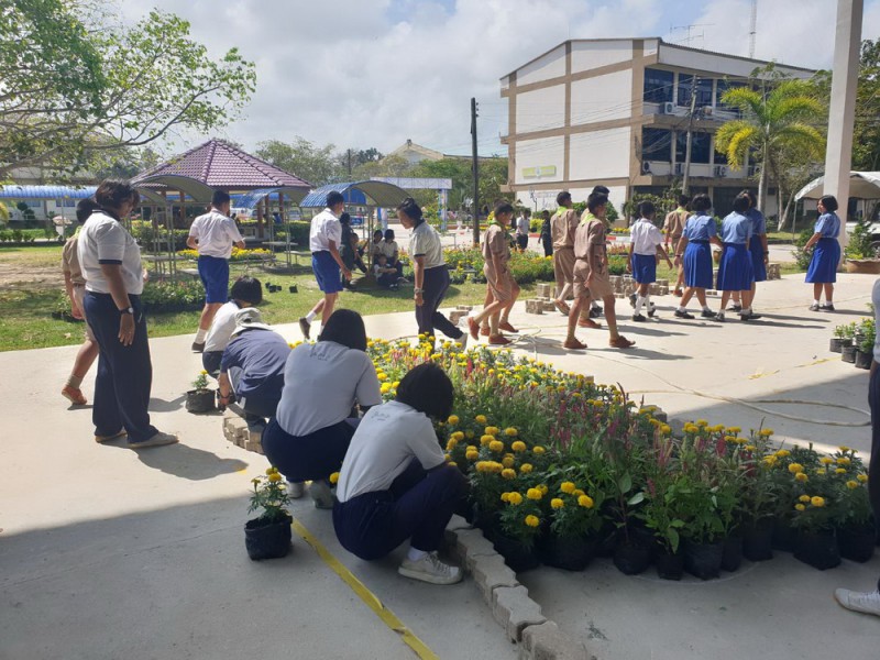 คุณครู บุคลากร และนักเรียนโรงเรียนระโนดวิทยา เตรียมสถานที่